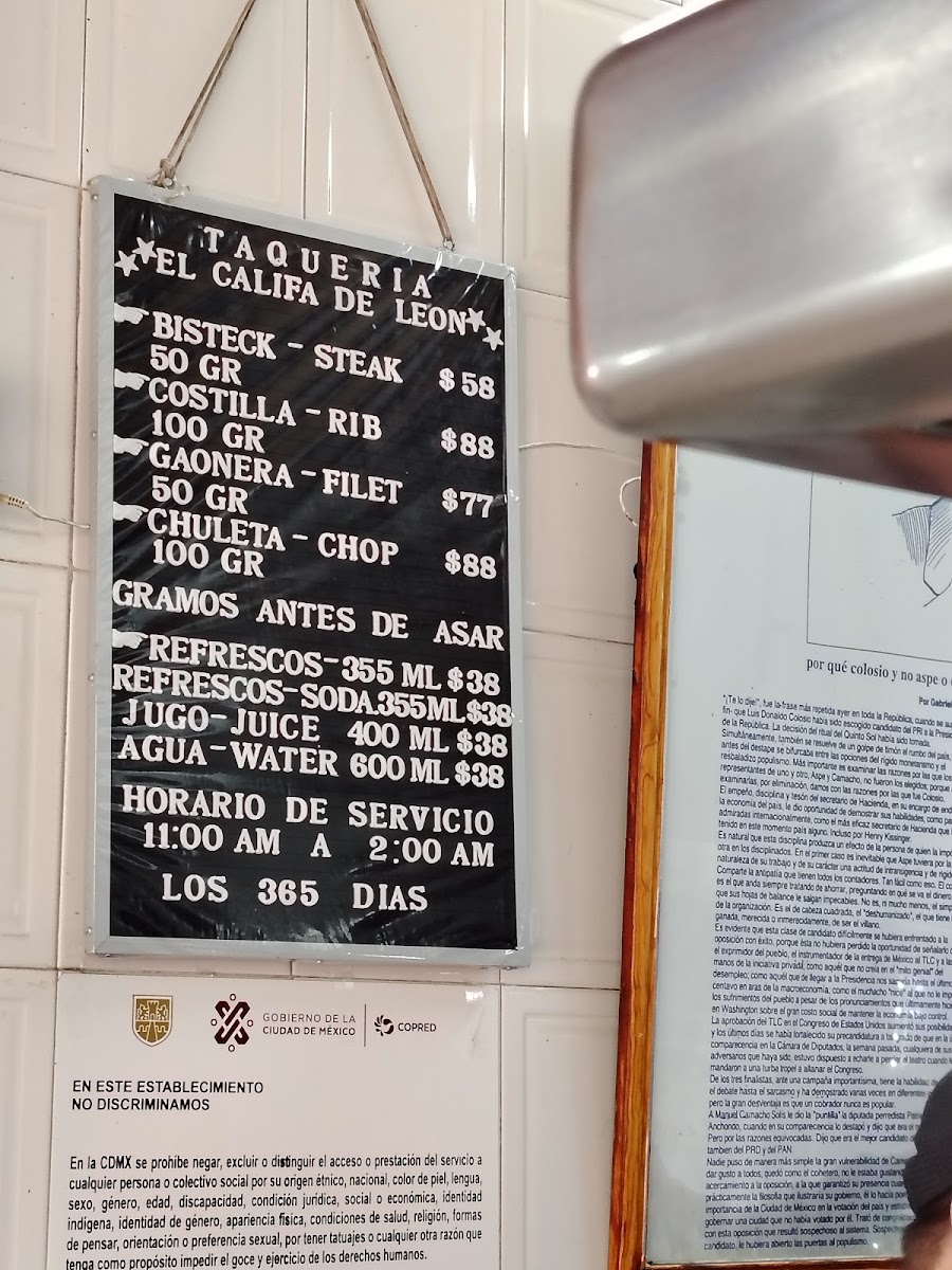 El Califa de León offers a straightforward and inviting menu that centers on classic Mexican tacos made with freshly prepared tortillas and flavorful cuts of meat. The menu is designed for casual bites that fit perfectly into any part of the day, whether you're grabbing a quick lunch, a laid-back dinner, or a late-night snack after exploring the city.